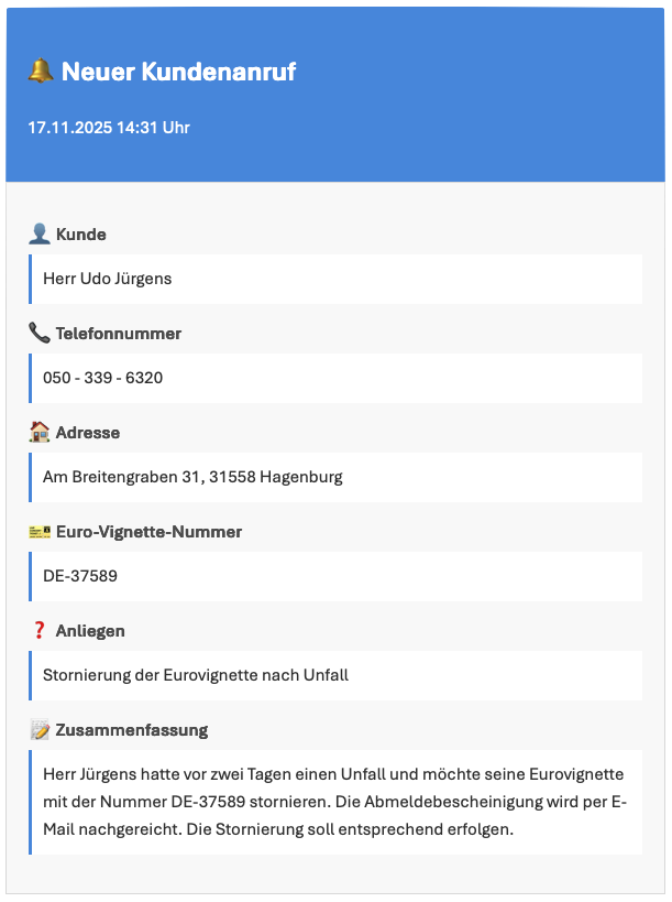 - Datenerfassung aus Anruf zur digitalen Weiterverarbeitung